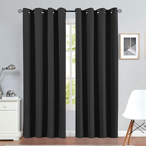 Amazon Com Nicetown Pitch Black Solid Thermal Insulated Grommet Blackout Curtains Drapes For Bedroom Window 2 Pane Drapes Curtains Curtains Blackout Curtains