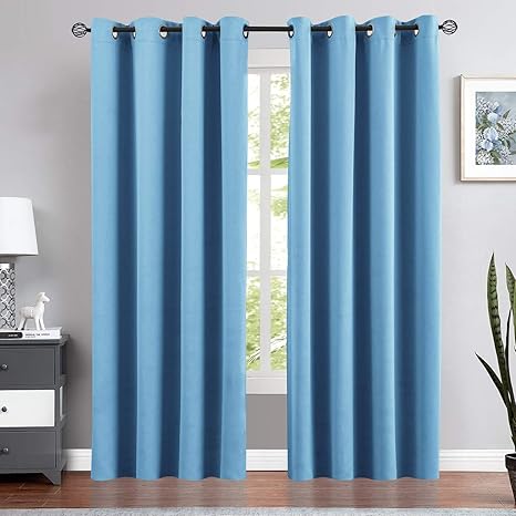 Amazon Com Blackout Curtains For Kids Room 95 Inches Long Triple Weave Nursery Window Curtain Panels For Boy S Room Darkening Thermal Insulated Drapes Grommet Top 1 Pair Sky Blue Kitchen Dining