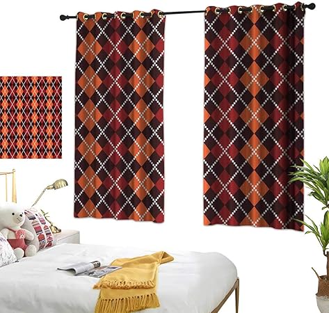 Warm Family Red Curtains Red And Brown Autumn Colors Retro Style Argyle Pattern Classical Old Fashion Scottish Irish Multicolor 63 X72 Bedroom Blackout Curtains Amazon Co Uk Kitchen Home