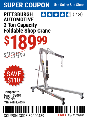 Only 189 99 For A 2 Ton Capacity Foldable Shop Crane Harbor Freight Coupons