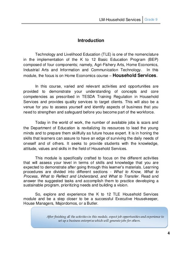 Lm Household Services Grade 9 1 K To 12 Basic Education Program Technology And Livelihood Education Home Economics Home Economics Household Life Skills Lessons