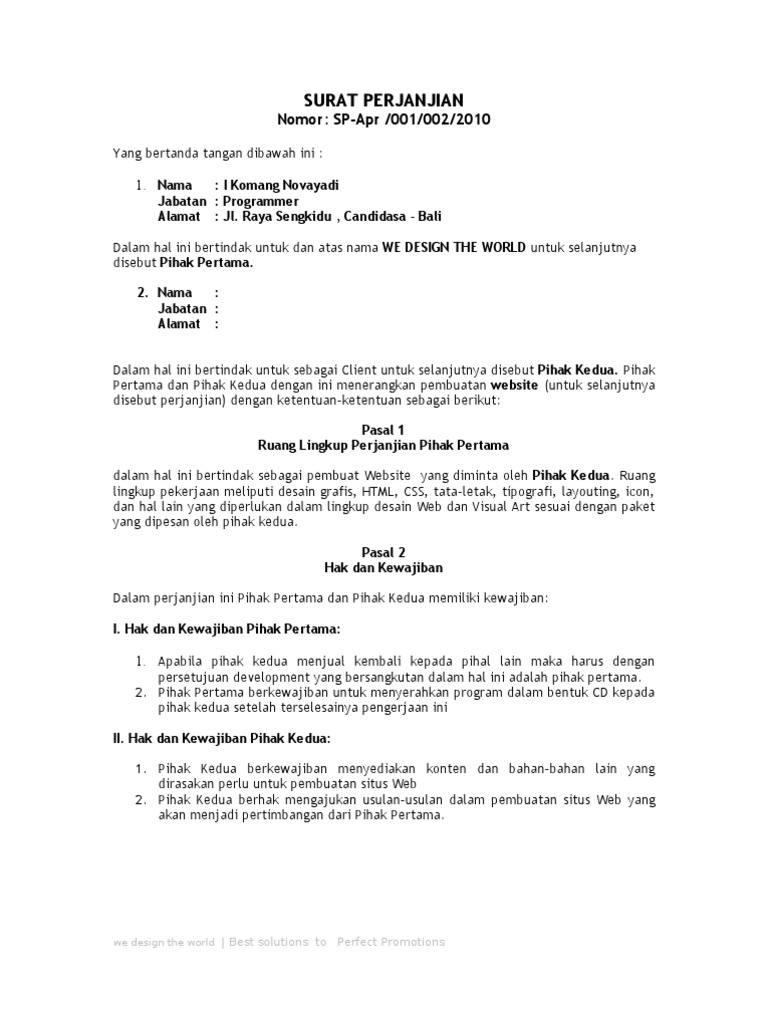 Surat Perjanjian Kontrak Kerja Freelance 2013 Cds Worldwide