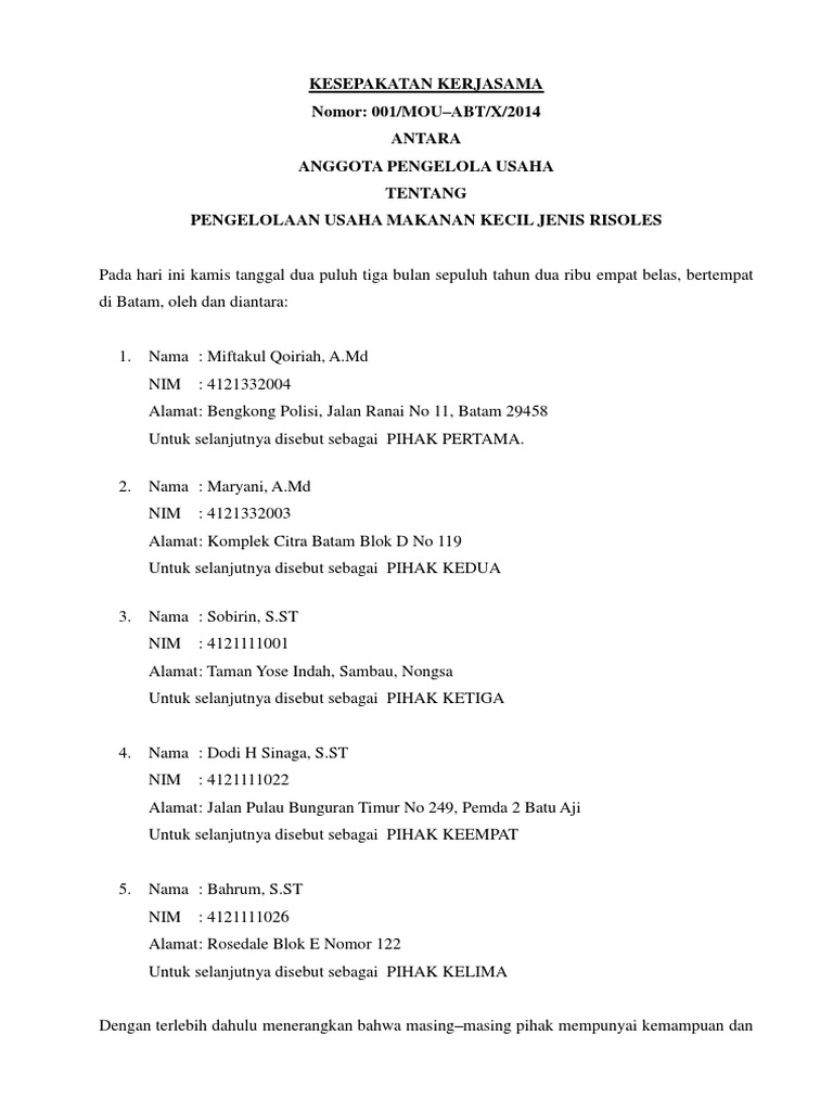 Contoh Surat Perjanjian Kerjasama Usaha Surat Nama Inspirasi