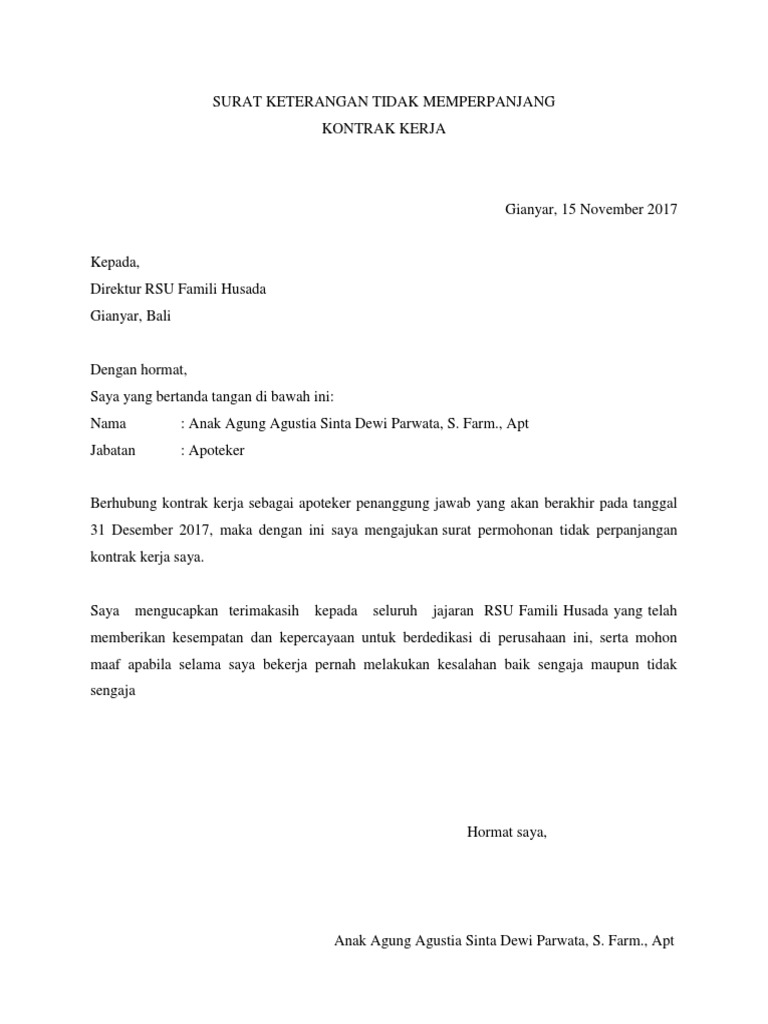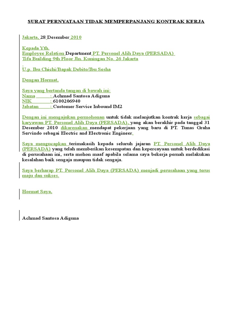 Surat Tidak Memperpanjang Kontrak Kerja Karyawan Contoh Seputar Surat