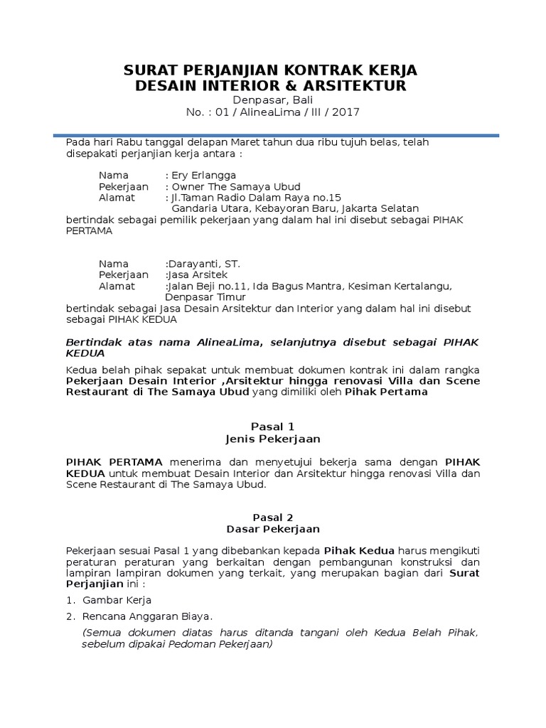 2 Contoh Surat Perjanjian Kontrak Kerja Kontraktor Dengan Pemilik Rumah