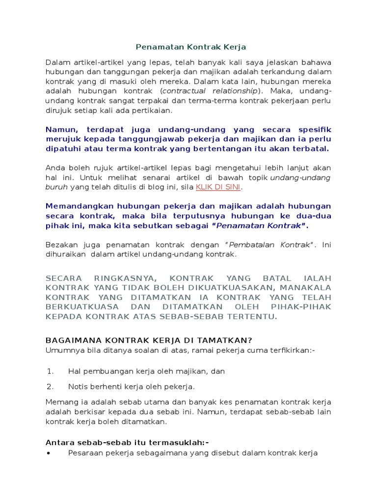 Penamatan Kontrak Kerja Docx