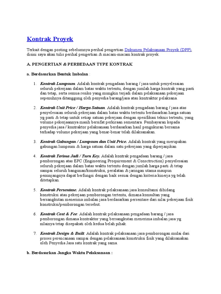 Doc Kontrak Kerja Proyek Konstruksi Reni Tyas Academia Edu