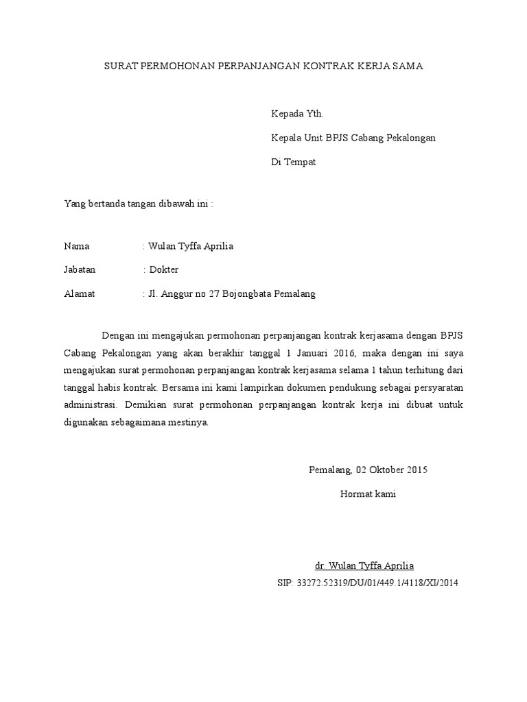 Contoh Surat Permohonan Perpanjangan Kontrak Kerja Bagikan Contoh