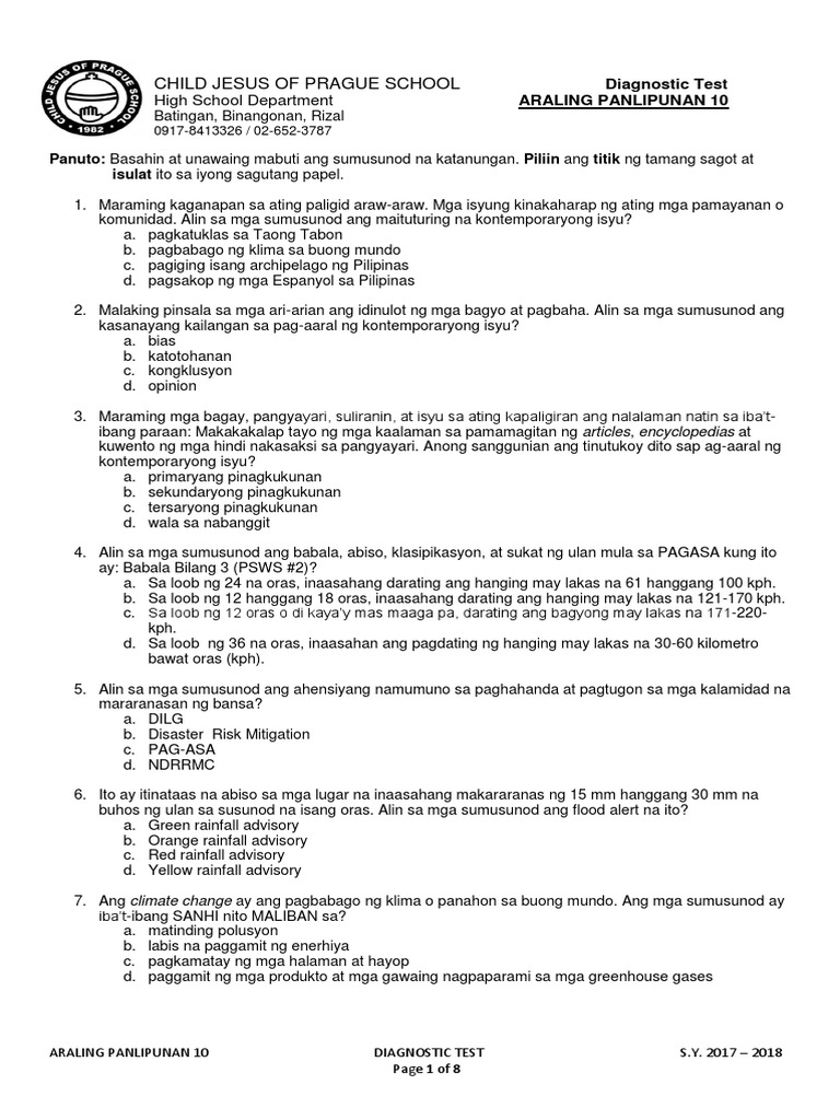 Diagnostic Test In Kontemoraryong Isyu With Answer Key