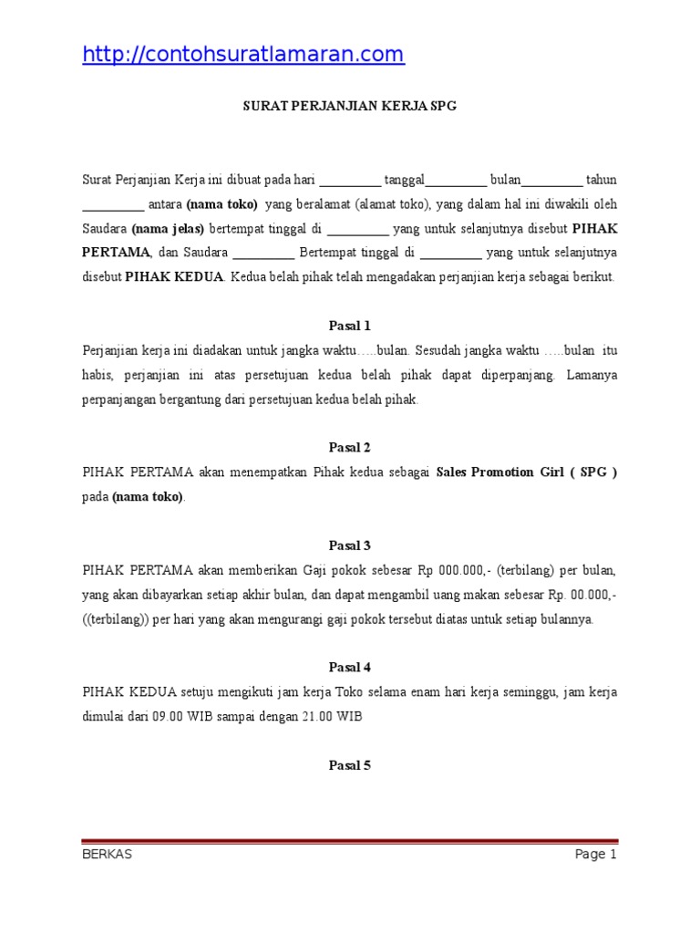 Contoh Surat Kontrak Kerja Karyawan Toko Backup Gambar